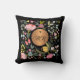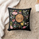 Coussin personnalisé chic glam girly avec un motif de prairie fleur sauvage pastel chic, un étiquette rond en cuivre doré, et un petit coeur sur un arrière - plan noir moody. ++++++++++ Personnalisez-le avec vos initiales de nom monogramme !