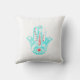 Coussin Main turquoise rouge Girly de Hamsa d'aquarelle de