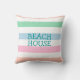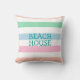 Voici un oreiller jeté sur la plage magnifiquement décoré, au printemps ou en été, avec des rayures décoratrices motifs dans les tons rose, bleu, vert et pêche. Conçu pour être une pièce de déco maison qui ajoute une touche de couleur à votre décor.