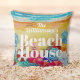 "Beach House" et votre nom de famille mettent en valeur ce motif de vagues sur une plage de sable et les bains de soleil sous des parasols colorés, ce design est un ajout amusant à votre décor extérieur d'été. CORRESPONDRE des articles dans notre magasin.
