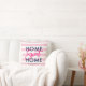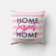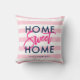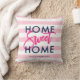 Le coussin à la maison doux à la maison de très bon goût comportant les mots "maison douce à la maison" en caractère sans obit et sans empattement bleus et manuscrit à la mode rose tous contre un rose en pastel et un blanc barre l'arrière - plan. Vérifiez d'autres articles à la maison ici https://www.zazzle.com/rosewoodandcitrus/gifts?cg=196222223301298047&rf=238364477188679314 de décor
