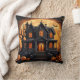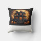 Maison hantée avec citrouilles d'halloween et chauves-souris sous pleine lune, Happy Halloween