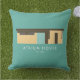 Coussin de plein air avec un rendu d'une maison moderne du milieu du siècle.