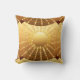 Abstrait motif mandala lancer l'oreiller dans un dégradé satiné de disques qui se chevauchent centré autour d'une roue à rayons d'étoiles - nuances de couleur or pâle à bronze profond