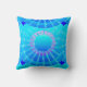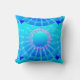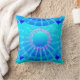 Abstrait motif mandala lancer l'oreiller dans un dégradé satiné de disques qui se chevauchent centré autour d'une roue à rayons d'étoiles - nuances de turquoise / paon et aqua, accentué de violet doux
