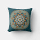 Cet oreiller à jetons présente un médaillon de mandala floral en turquoise, olive, rouille et crème.
