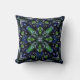 Ce coussin élégant comporte une peinture abstraite numérique originale de mandala dans des couleurs bleu-foncé et vertes.