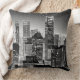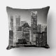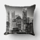 Coussin dans une illustration semi-abstraite du centre-ville de Manhattan en noir et blanc, illuminé de lumières de la ville, sous un ciel étoilé