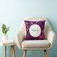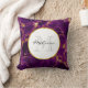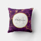 Coussin personnalisée avec un beau motif abstrait au design marbré. Des couleurs violettes riches se mélangent avec des rubans tourbillonnants d'or faux, mélangeant et mélangeant les couleurs tout au long du design. Un cercle avec une fausse bordure en feuille d'or superposée avec votre texte personnalisé à l'intérieur.