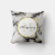 Une coussin avec une motif marbrée moderne et classe. Marbre blanc, noir et gris fumé avec de minces rubans de tourbillons en faux or dans tout le motif. Un cercle blanc avec un cadre en faux or superposé avec votre initiale monogramme et votre nom à l'intérieur.
