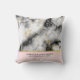 Un coussin commémoratif mariage avec un motif marbré élégant et moderne. Marbre blanc, noir et gris fumé avec de minces rubans de tourbillons en faux or dans tout le motif. Un dégradé rose clair arrière - plan sous la motif en marbre.
