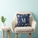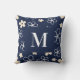 Arrière - plan bleu marine avec motif floral de style rétro blanc et crème. Personnalisez et ajoutez votre lettre monogramme, initiale.