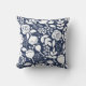 Plan floral bleu marine et blanc 2 faces lancer oreiller.