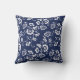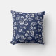 Coussin Marine et modèle floral blanc