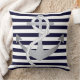 Un coussin nautique moderne et joli pour le marin à coeur. Ce coussin dispose d'un arrière - plan rayé blanc et marine avec un ancre en argent. Ce coussin est idéal pour votre chambre à thème nautique, chalet ou voilier.