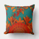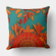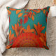 Coussin Marocain rustique or rouge orange bleu feuilles d'