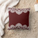 Un joli arrière - plan rouge marron est magnifiquement contrasté avec une bordure en dentelle blanche complexe dans cette image, faisant un beau coussin qui va égayer n'importe quelle chambre. Ajoutez votre propre texte customisé, si vous le souhaitez. *Remarque : l'image est imprimée sur la surface et ne contient aucune dentelle réelle.* **Créée à l'aide d'oeuvres achetées à Digital Design Boutique à l'adresse http://digitaldesignboutique.com.