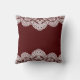 Coussin Maroon en dentelle blanche