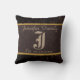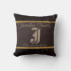 Coussin Marron Monogramme Aspect Bois Toile Burlap Rustiqu