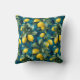 Mediterranean Lemon Watercolor Blue Yellow Pattern Throw Pillow
