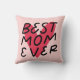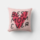 Jetez un oreiller moderne et mignon avec un coeur rouge et des lettres de la main noire pour Best Mom Ever sur arrière - plan rose.