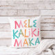 Ajoutez un peu de plaisir tropical à votre décor de vacances avec cet oreiller de lancer avec la typographie "Mele Kalikimaka" qui affiche dans les tons dégradés de bleu aqua, rose et orange. Oeuvre de KL Stock.
