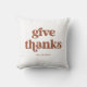 Ce coussin simple et boho dit "merci" dans la typographie rétro en terre cuite sur un arrière - plan blanc, et est la façon parfaite de décorer votre maison pour Thanksgiving.