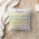 Une douce aquarelle de couleur pastel mélangé vert, jaune, violet, rose et pêche fournit un cadre magnifique pour une fête des mères ou un cadeau pour le sentiment de maman. La prose des deux côtés du coussin peut être customisée.