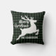 Coussin Merry Christmas Deer Green & Black Plaid Name