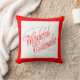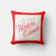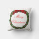 L'avant du coussin a une frontière rouge. En rouge et vert de fête, ce 16" x 16" coussin de Noël équipera juste dedans de votre décor régulier de vacances. Un l'inverse nous avons une guirlande traditionnelle de houx avec un arc rouge et un "Joyeux Noël."