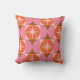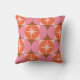 Add retro vibes to your home decor with this throw pillow featuring elegant mid century retro starbursts on orange circles with pink half circles on squares