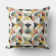 A bold celebration of balance and motion, this throw pillow features a repeating geometric pattern inspired by midcentury modern design. Layered circles, arcs, and angular forms intersect in a refined palette of sage green, warm ochre, soft coral, charcoal, and cream. The composition feels both playful and architectural, making it an ideal accent for contemporary, retro, or eclectic interiors. Perfect for sofas, chairs, or beds, this pillow adds visual rhythm and timeless style to any space.