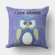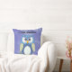 Coussin mignon Little Owl en bleu sur un terrain de jeu pourpre