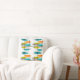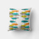 Retro Inspiré design Coussin, style mi-siècle II, main dessinée par l'artiste. Motif turquoise bleu, orange et jaune sur un arrière - plan blanc.