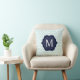 Coussin Mint bleu et blanc Chevron Navy Monogram Design