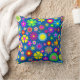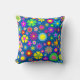 Design de fleurs colorées sur l'oreiller de lancer arrière - plan bleu