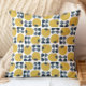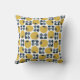 Coussin Modèle Floral Rétro Marine, Gris, Jaune de moutard