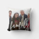 Cet adorable coussin présente le mot "famille" dans un script blanc moderne avec la photo de famille affichée derrière. Choisissez la couleur arrière - plan de l'arrière du coussin en fonction de votre photo ou de votre décor.
