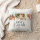 A modern photo collage best friends throw pillow, with the word bestie in a pretty script font. Add 3 of your favorite pictures on the front of the pillow. Back of pillow has a pink and white polka dot pattern. Personalize it with your name and your best friends name. Makes a fun gift. Designed for you by Blackberry Boulevard.