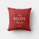 Personalized Christmas pillows feature modern family name typography and snowflakes, simple and elegant.