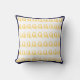 coussin moderne avec cadre à garniture bleu marine chats jaune moutarde et blanc sur coussin blanc