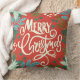 Ce magnifique oreiller de Noël présente des éléments floraux dessinés à la main dans différentes nuances de vert, menthe, turquoise, blanc cassé. On y trouve du pin, des fleurs, des sprigs, des feuilles, des baies ainsi que des lettres modernes en blanc cassé, lisant "Joyeux Noël". La couleur arrière - plan est un rouge traditionnel de Noël, classique. Le dos de la carte a un autre endroit pour une photo. Oeuvre originale de Caroline Bonne Müller