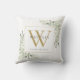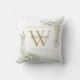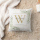 Élégant oreiller de jet avec monogramme de verdure à l'aquarelle avec initiale de monogramme or. Conçu par Thisisnotme©
