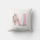 Coussin Moderne Élégant rose Floral Nom initial Monogramme