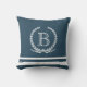 Design monogramme avec couronne de laurier et décoration rayures sur arrière - plan bleu