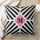 Coussin Monogramme à rayures diagonales noir et blanc mode