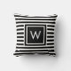 Élégante housse de coussin personnalisée noire et blanche à rayures avec un monogramme initial noir et blanc gras et élégant. Vous pouvez personnaliser l'initiale et choisir la couleur de votre choix.