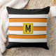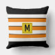 Coussin Monogramme à rayures orange vif