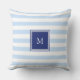 Coussin Monogramme blanc bleu-clair moderne de motif de