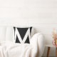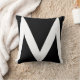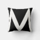 Coussin décoratif avec monogramme blanc élégant sur fond noir. La grande lettre M peut être personnalisée.